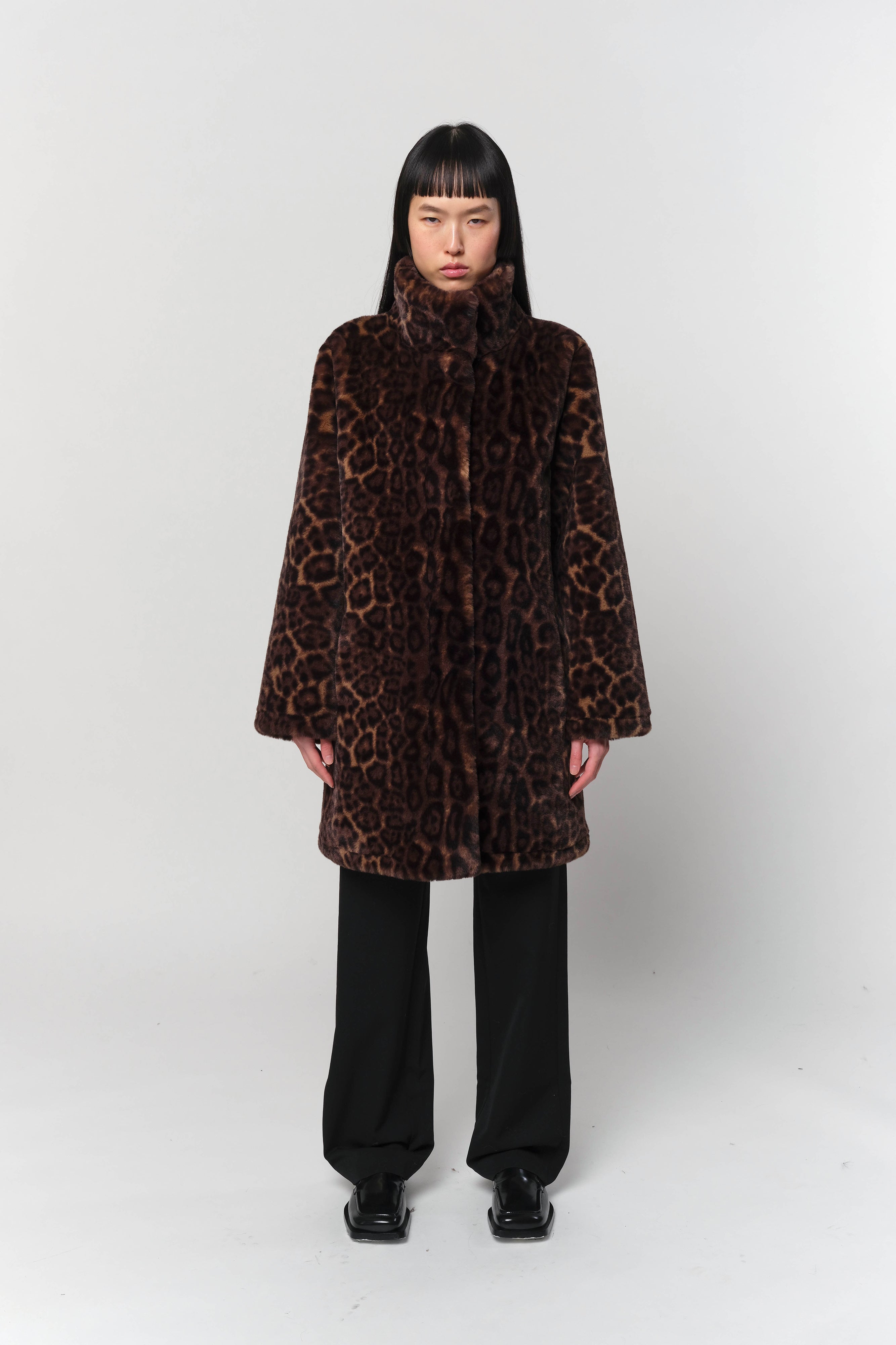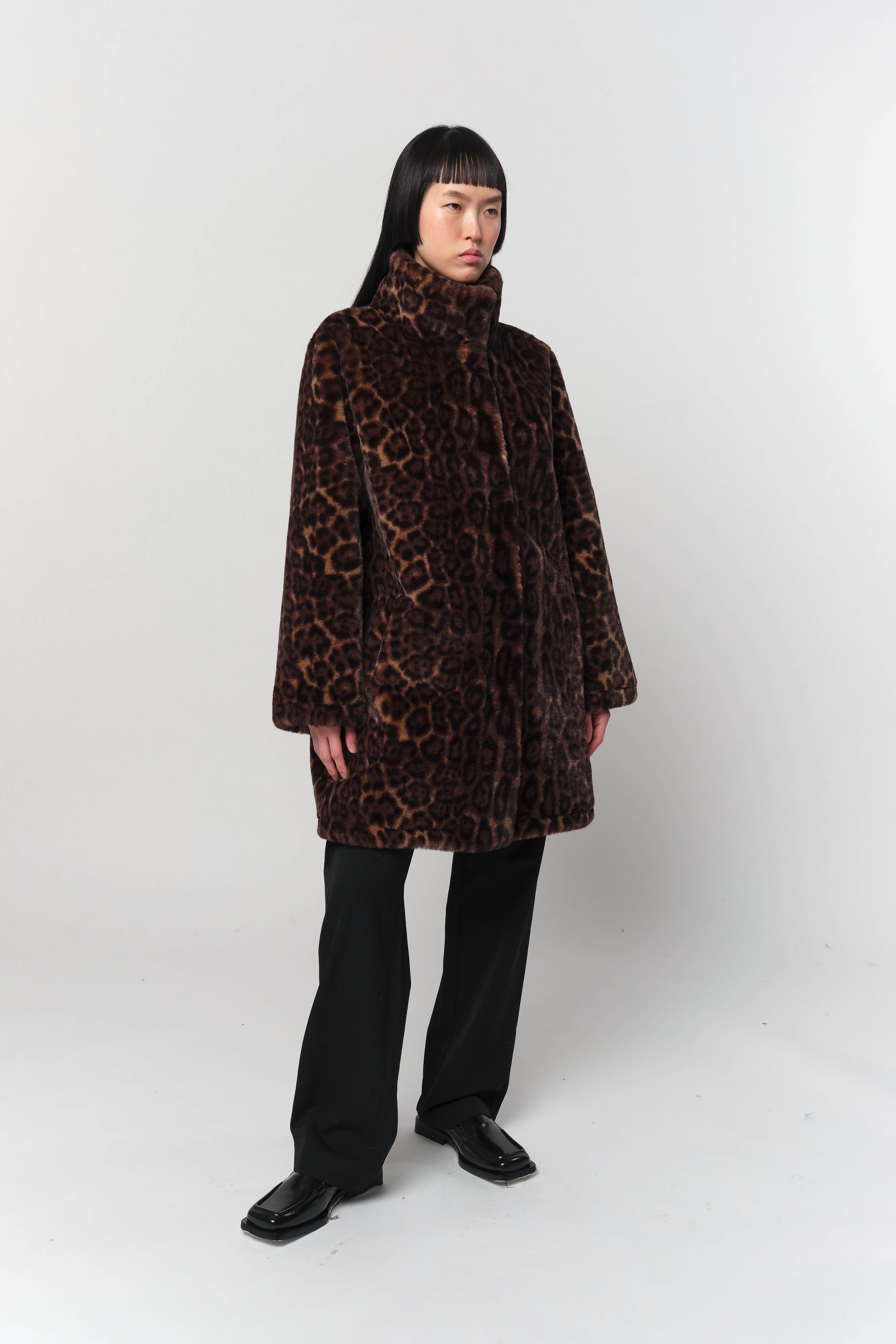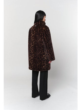 Blair Leopard Mid-Length Coat in Dark Leopard