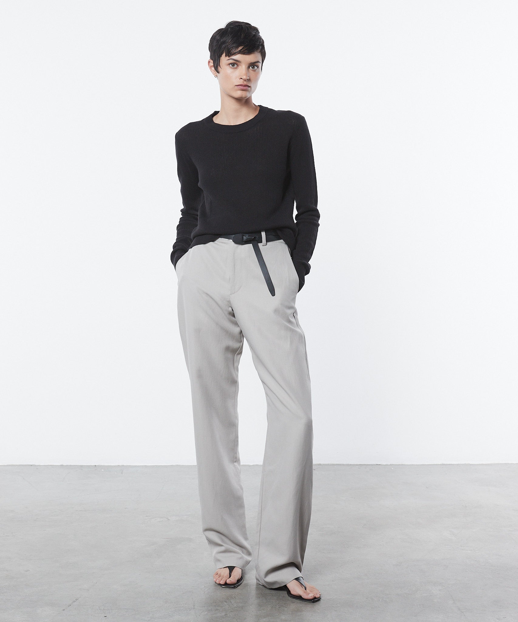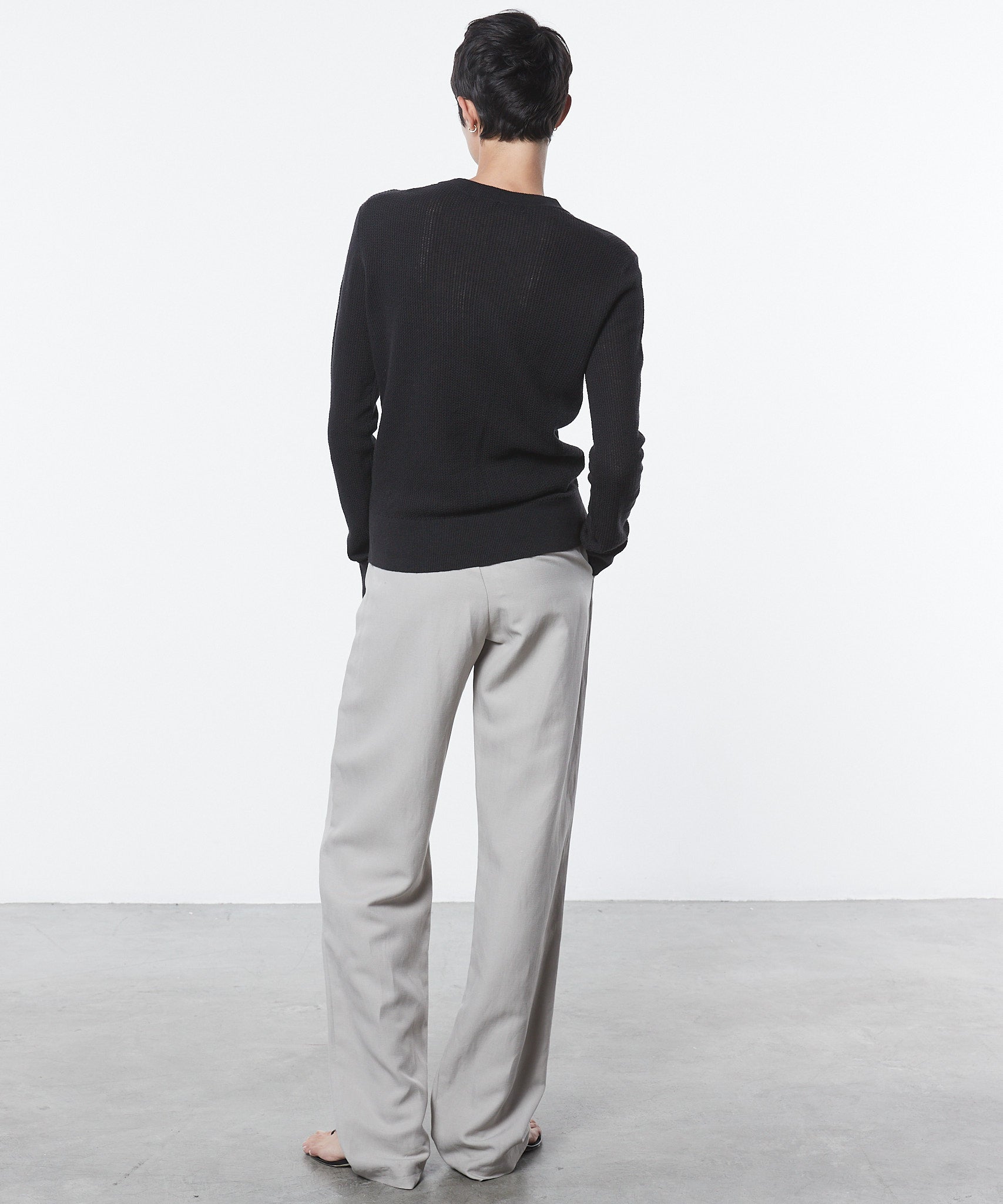 Linen Open Knit Crewneck in Black