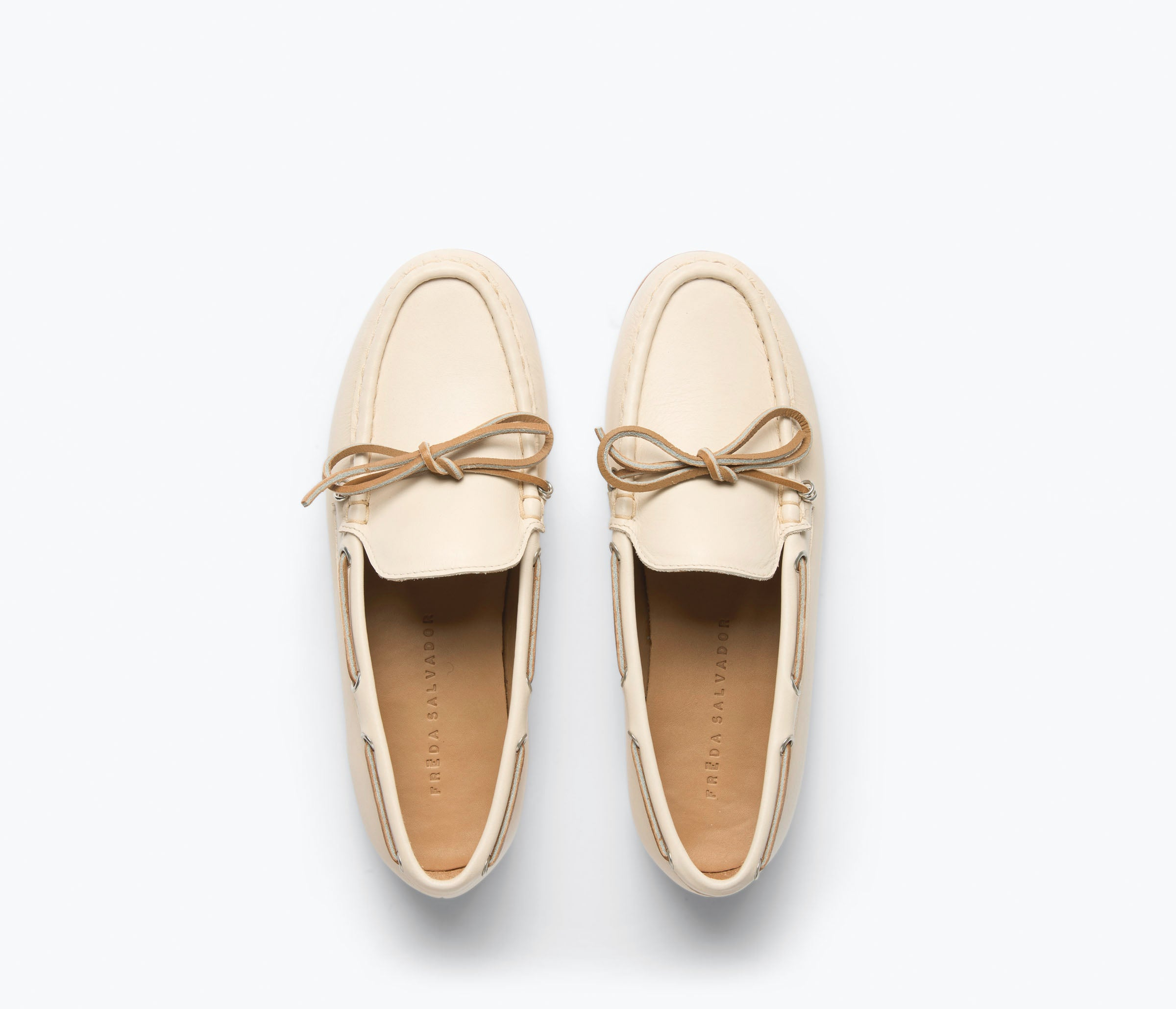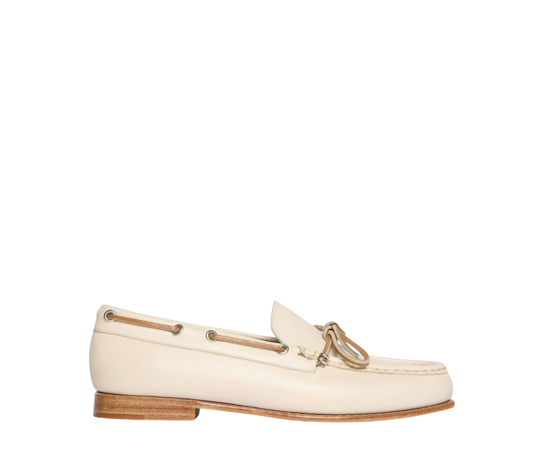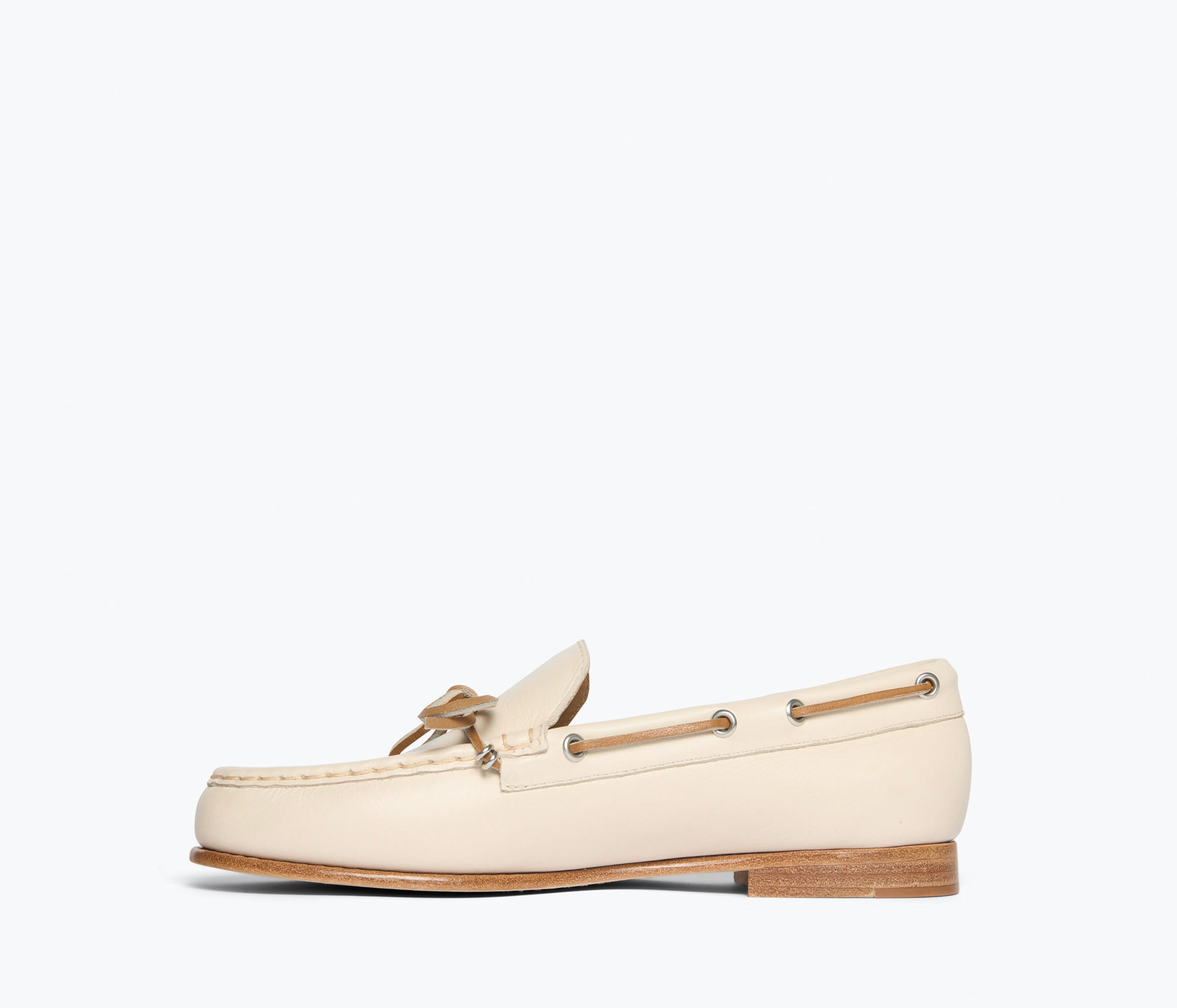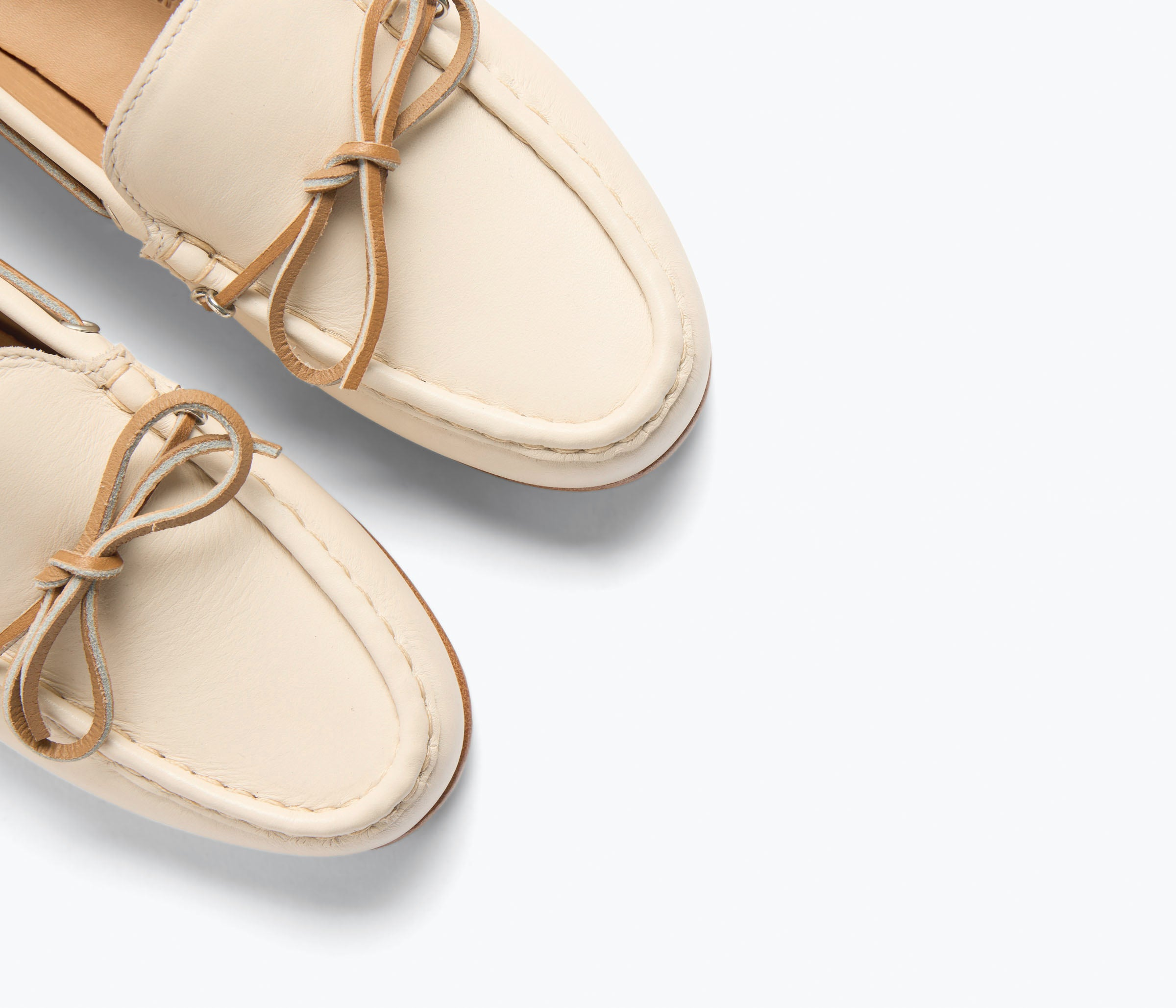 The classic boat shoe reimagined. Made by hand with bone calf leather, the MORGAN elevates the timeless style with a slightly oversized bow, leather sole, and comfortable padded footbed.