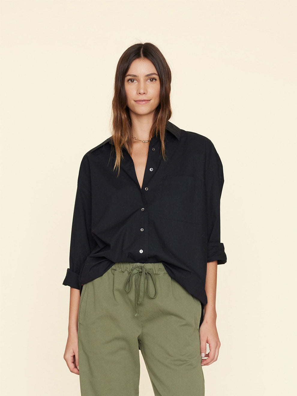 Easy does it. Sydney is updated this season in our midweight crisp cotton poplin. Sydney is an oversized button-down shirt with a left chest patch pocket and shirttail hem with side slits.